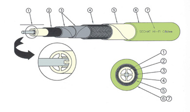 SECHAT C'est l'évolution du SOBEK sur plusieurs points. Le conducteur central est constitué en cuivre monobrin. Le diélectrique est désormais en PTFE à cavités pour diminuer la capacité entre l'âme et la tresse, ce qui a pour conséquence une amélioration de la transmission des fréquences les plus élevées. Le blindage est à haute immunité, constitué d'une double tresse de cuivre enserrant deux couches de ruban mumétal. La gaîne est désormais constituée sans colorant. JCT Digit One Le JCT Digit One est l'aboutissement des développements de HI-FI Cables et Cie concernant la liaison numérique 75 ohms. Dans ce câble, tout en respectant scrupuleusement l'impédance accordée nominale de 75 ohms, les conducteurs ne sont pas configurés en structure coaxiale, mais en liaison de type BUS, ce qui permet d'éviter l'utilisation de la tresse de masse comme conducteur. De cette manière on conserve parfaitement l'intégrité du signal numérique car aucun des conducteurs n'est exposé aux champs électromagnétiques ambiants. Les conducteurs sont bien-sur gaînés PTFE et l'ensemble est protégé par un double écran Mumétal. Ce câble transcende la restitution sonore numérique. JCT AES/EBU One C'est notre référence en câble AES/EBU 110 ohms. Ses conducteurs sont gaînés en PTFE alvéolaire et il est muni d'un double blindage mumétal à haute immunité. Les isolants sont tous sans colorant. Il respecte scrupuleusement l'impédance nominale de 110 ohms.