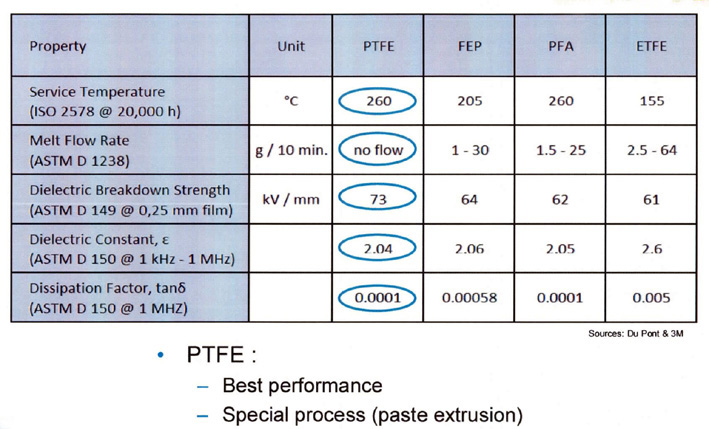 TABLEAUX COMPARATIFS DES DERIVES FLUOROPOLYMERES